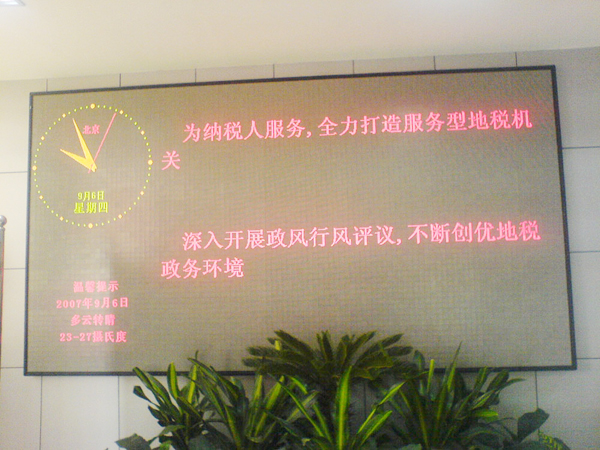 1.采用3.75室內(nèi)單、雙色顯示屏,顯示文字清晰,精度高,無論遠(yuǎn)、近距離觀看都能保證的文字的不失真。