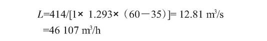 式中:L———通風(fēng)量,取46 107 m3/h,式(2)的計算值