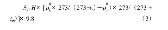 (1)空腔抽力Sy參考《鍋爐房實用設(shè)計手冊》公式(3-13),得式(3):
